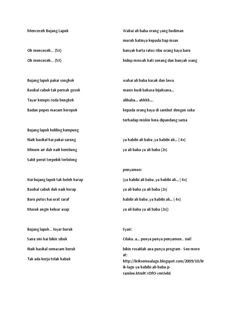 Tuhan BEBERAPA hari lalu sebuah saluran tv saluran Astro ada menayangkan filem-filem Allahyarham Seniman Agung Tan Sri PRamlee. Ali Baba bujang lapok. LAGU ALI BABA BUJANG LAPOK Beginilah nasib diriku yang malang-Oh.